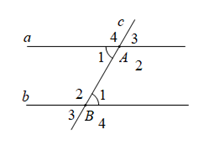 \(a//b,\) \(c \cap a = \left\{ A \right\};c \cap b = \left\{ B \right\}\)