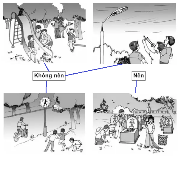 Em hãy quan sát và nối các bức tranh dưới đây với ô chữ “Nên” hoặc “Không nên” cho phù hơp.