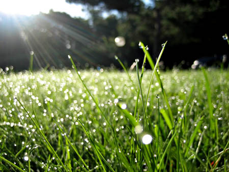 + Hơi nước đọng trên các lá cây, ngọn cỏ vào sáng sớm.
