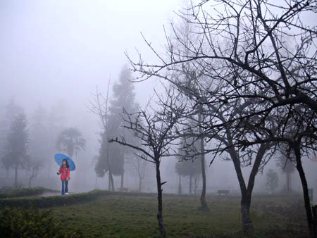 + Hơi nước mong manh, nhìn giống như những làn khói vắt ngang ngọn cây hay trải trên các mặt sông, mặt hồ.