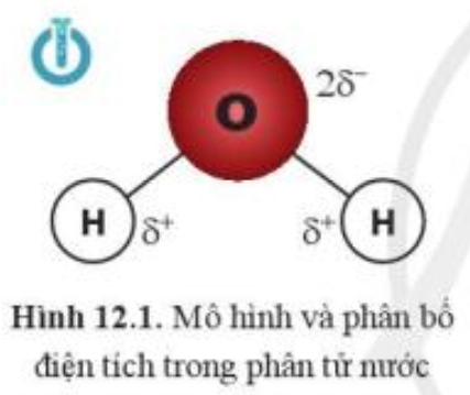 Dựa vào sự phân bố điện tích trong phân tử nước (hình 12.1), liên kết giữa hai phân tử nước được hình thành qua cặp nguyên tử O với H.