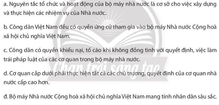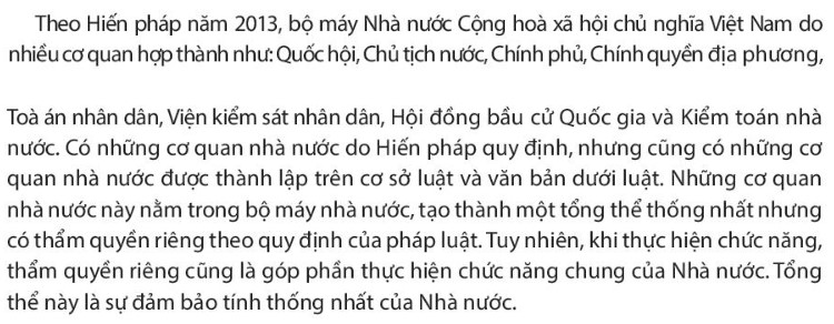 – Đọc thông tin kết hợp với hiểu biết cá nhân, xác định tính thống nhất của bộ máy Nhà nước Cộng hòa xã hội chủ nghĩa Việt Nam.