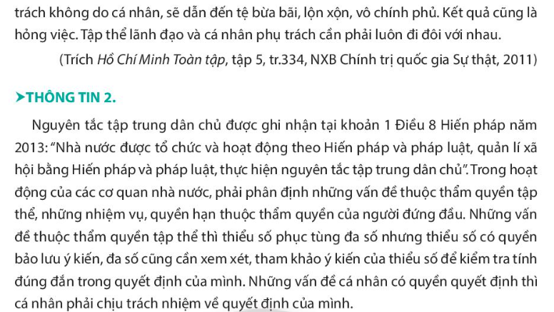– Em hiểu thế nào là tập trung dân chủ qua trích đoạn ở thông tin 1?