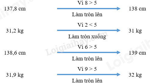 Em hãy làm tròn các số đo trong bảng đến số tự nhiên gần nhất.