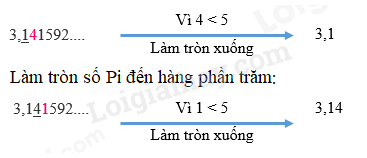 Em hãy làm tròn số Pi đến hàng phần mười, hàng phần trăm.