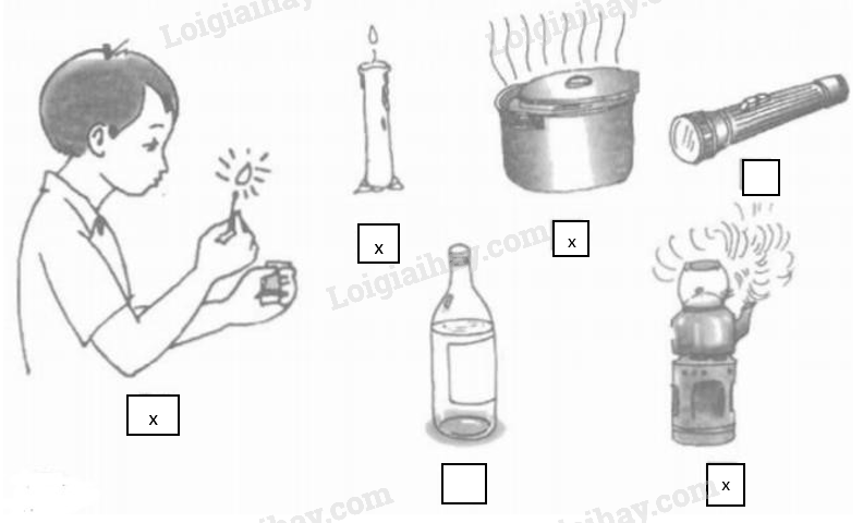 Đánh dấu x vào ô trống dưới hình vẽ vật có thể gây bỏng.