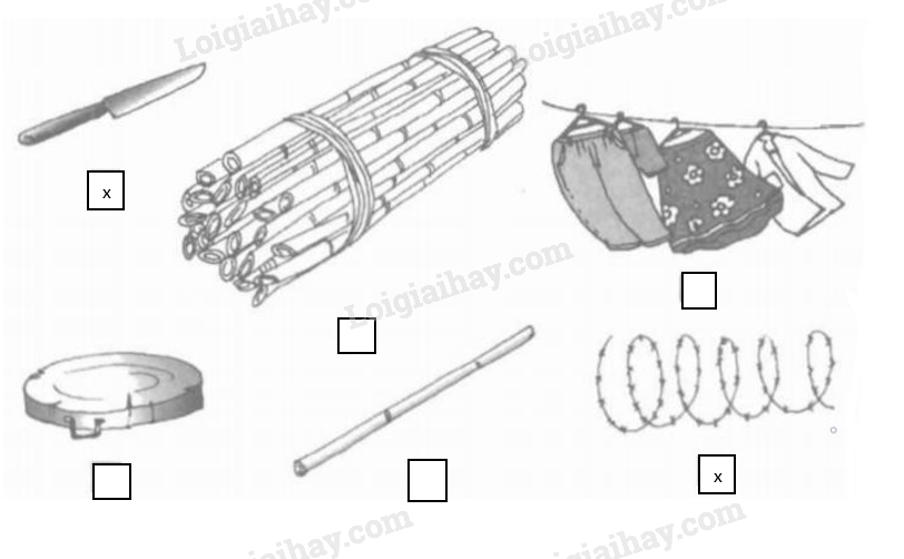 Đánh dấu x vào ô trống dưới hình vẽ vật có thể gây đứt tay.