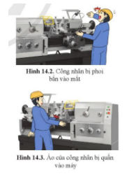 Công nhân không tuân thủ nội quy về trang phục khi làm việc với máy khiến áo bị cuốn vào máy (hình 14.3).