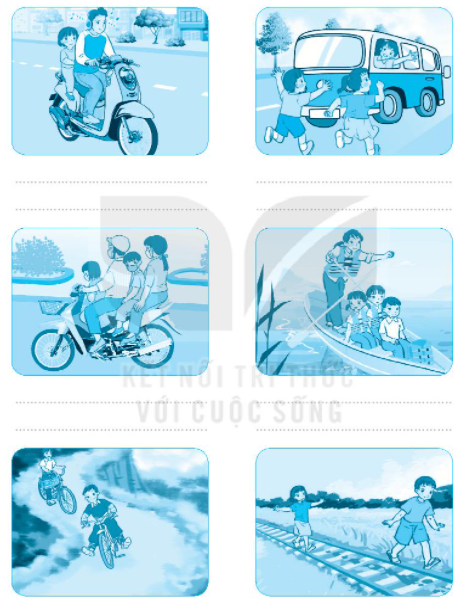 Viết vào chỗ (…) dưới mỗi hình những tình huống tham gia giao thông không đúng quy định.