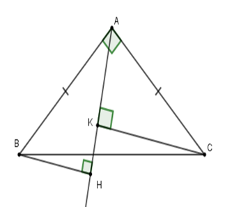 \( \Rightarrow \Delta ABH = \Delta CAK\) (cạnh huyền-góc nhọn) suy ra \(BH = AK.\)