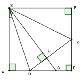 Mà Vậy \(\widehat {DBK} = \widehat {DBH} + \widehat {HBK} = 45^\circ .\)