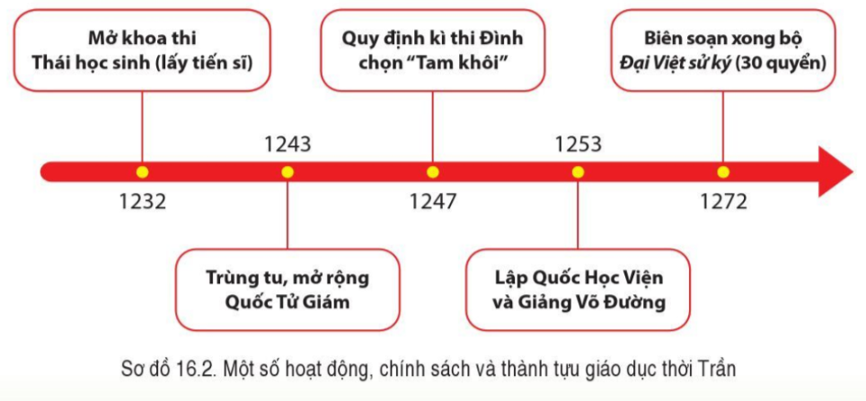 Đọc thông tin, tư liệu và quan sát sơ đồ 16.2, hình 16.3, hãy trình bày, những nét chính về tình hình văn hóa Đại Việt dưới thời Trần.