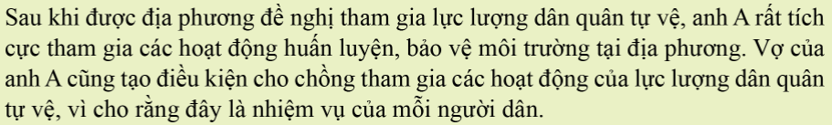 Sưu tầm và viết 1 bài về 1 tấm gương tích cực thực hiện quyền và nghĩa vụ công dân bảo vệ Tổ Quốc tại địa phương.