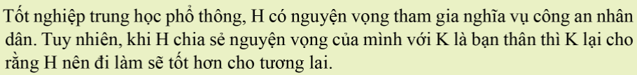 a. Đọc trường hợp và nhận xét suy nghĩ, lời nói của H và K trong trường hợp đó.