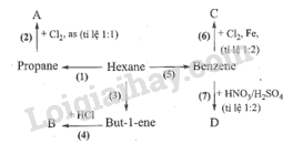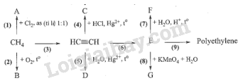 Hoàn thành sơ đồ chuyển hoá sau đây và viết các phương trình hoá học. (Biết A, B, C, D, F là các sản phẩm chính)