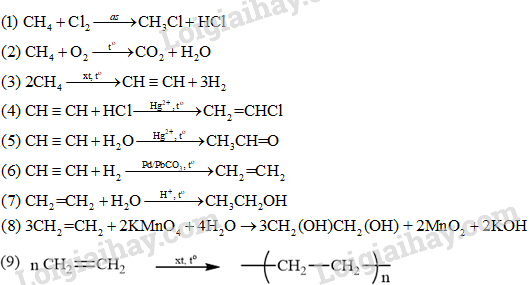 + methane, ethylene, acetylene là chất khí.