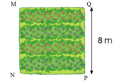 Ta có mảnh vườn dạng hình vuông nên MN = NP = PQ = 8 m