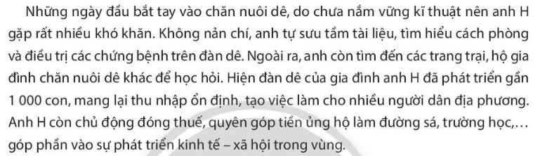 – Từ những việc làm đó, nêu được đóng góp của anh H cho nền kinh tế và đời sống xã hội.