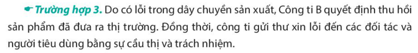 Là người tiêu dùng, em đồng tình với cách xử lí của công ti B vì nếu không thu hồi số sản phẩm đó, số sản phẩm đó sẽ được tung ra thị trường và bán cho người tiêu dùng, gây ảnh hưởng đến sức khỏe của người tiêu dùng. Hơn nữa, trách nhiệm của người sản xuất là phải cung cấp những hàng hóa không làm tổn hại đối với con người, môi trường và xã hội. Vì vậy, công ti B đã thực hiện rất đúng trách nhiệm của mình.