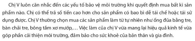 – Nêu được những việc làm thể hiện vai trò chủ thể tiêu dùng của chị V.