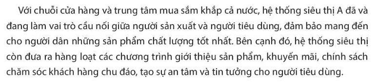 Chủ thể kinh tế nào được đề cập trong trường hợp trên? Hoạt động của hệ thống siêu thị A đã giúp ích gì cho người sản xuất và người tiêu dùng?