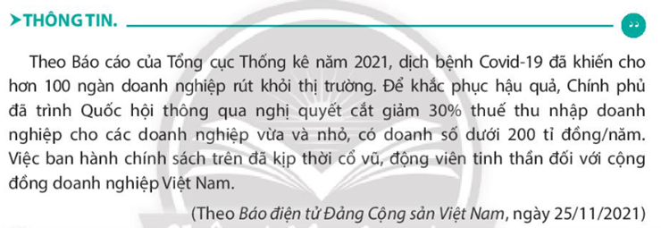 – Đọc thông tin và xác định những việc làm của Nhà nước đối với doanh nghiệp trước tác động của dịch bệnh Covid -19.
