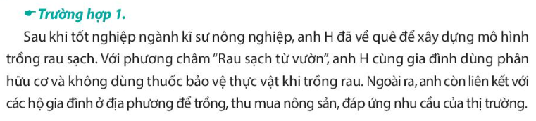 – Đọc thông tin và xác định những việc làm của anh H thể hiện trách nhiệm với tư cách là chủ thể sản xuất khi tham gia vào nền kinh tế.