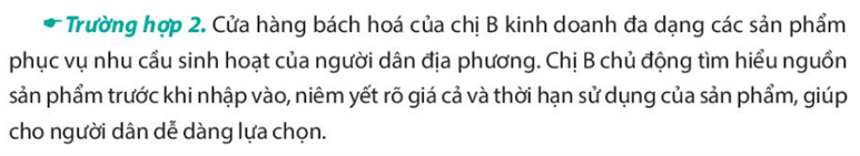 – Theo em, hoạt động của hộ kinh doanh A đã phù hợp vì đã có trách nhiệm cung cấp những hàng hóa không làm tổn hại đối với con người, môi trường và xã hội. Ngoài ra, việc sản xuất những mặt hàng thân thiện với môi trường đó còn đem lại thu nhập cho người lao động, góp phần thúc đẩy sự phát triển kinh tế – xã hội.