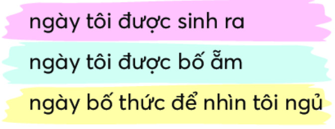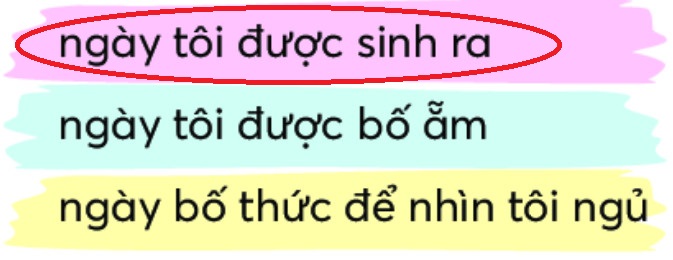Dòng thay thế được cho ngày tôi chào đời đó là: Ngày tôi được sinh ra