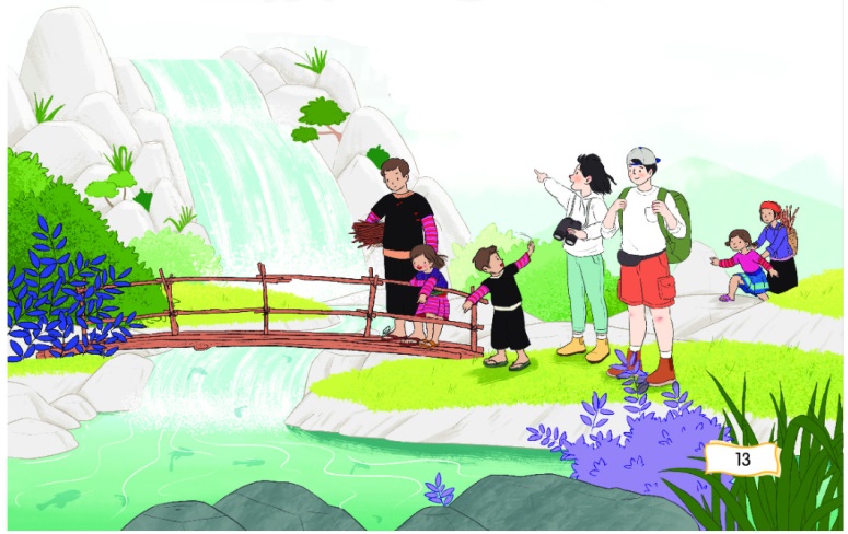 Câu 2: Khách đến thăm bản thường đứng hai bên thành cầu để làm gì?