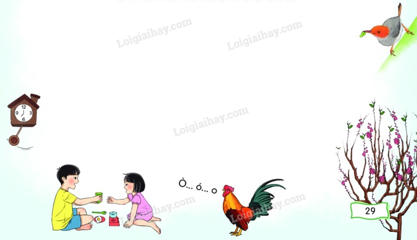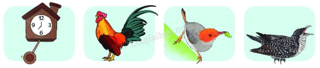 Em đọc lại bài và tìm hoạt động của đồng hồ, con gà trống, chim sâu, chim tu hú