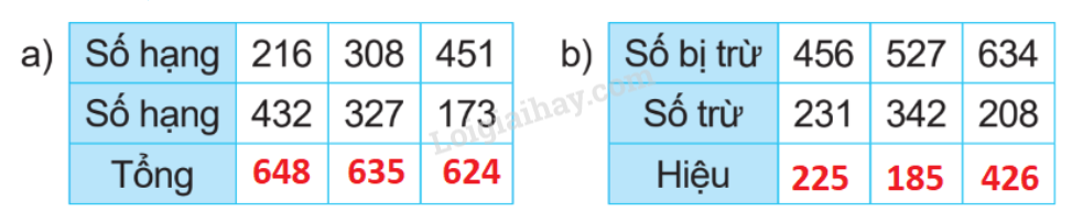 b) Muốn tìm hiệu ta lấy số bị trừ trừ đi số trừ