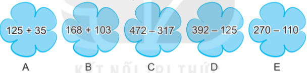c) Bông hoa ….. và ….. ghi hai phép tính có kết quả bằng nhau