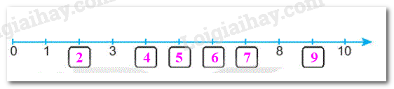 b) Quan sát tia số ở câu a, các số lớn hơn 3 và bé hơn 10 là: