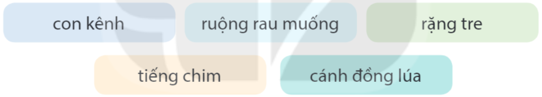 – Con kênh: nước trong vắt, dải cỏ xanh êm như tấm thảm ở hai bên bờ kênh.