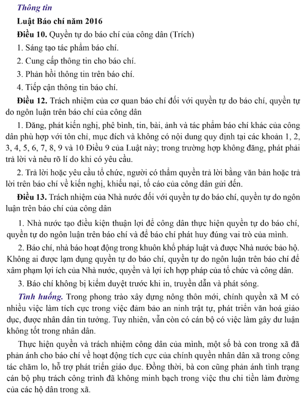 4. Bài 20. Quyền và nghĩa vụ công dân về tự do ngôn luận, báo chí và tiếp cận thông tin