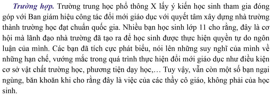 Đọc trường hợp và chỉ ra trách nhiệm của các bạn học sinh Trường Trung học phổ thông X đã được thực hiện trong trường hợp đó.