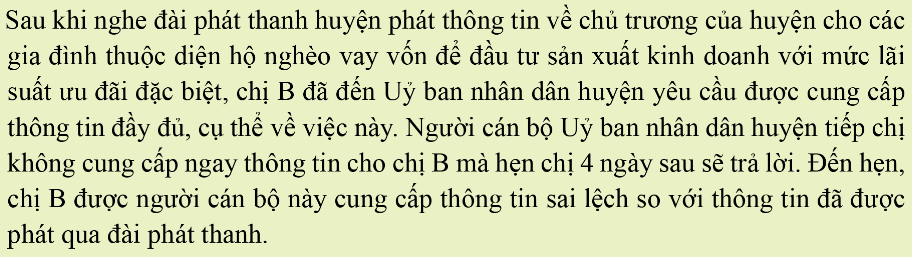 Người cán bộ Uỷ ban nhân dân huyện không thực hiện đúng quyền và nghĩa vụ công dân về tiếp cận thông tin vì không những không cung cấp ngay thông tin cho chị B, mà còn cung cấp thông tin sai lệch.