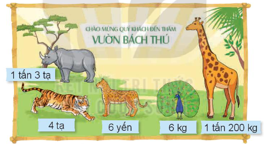 Đến khu vườn thú, có một số con vật với cân nặng như sau: