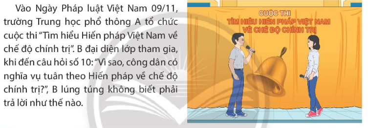 – Đóng vai là nhân vật B để trả lời câu hỏi: Vì sao công dân có nghĩa vụ tuân theo Hiến pháp về chế độ chính trị?