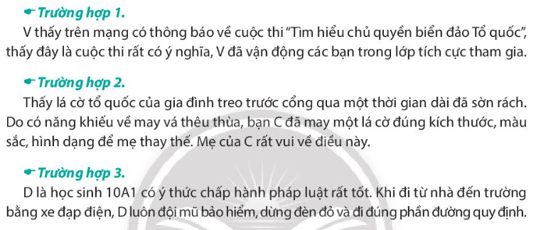 *Trường hợp 1: Hành động của V đã thể hiện rất rõ ý thức trách nhiệm của mình trong việc bảo vệ lãnh thổ, chủ quyền của nước Cộng hòa xã hội chủ nghĩa Việt Nam trên mạng xã hội.
