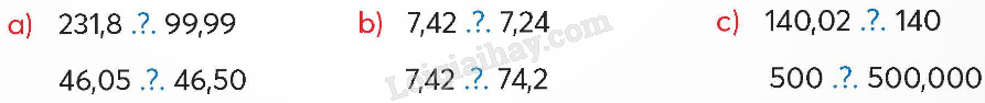 Dựa vào cách so sánh số thập phân để điền các chữ số thích hợp với dấu ?
