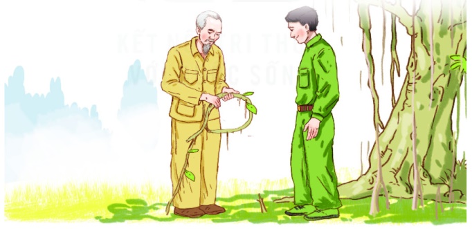 Nói rồi, Bác cuộn chiếc rễ thành một vòng tròn, cùng chú cần vụ buộc nó tựa vào hai cái cọc, sau đó mới vùi hai đầu rễ xuống đất.