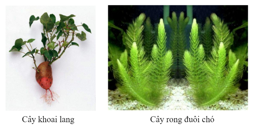 – Chậu cây khoai lang (tuỳ từng địa phương và tuỳ theo thời vụ, có thể thay bằng các cây khác), rong đuôi chó.