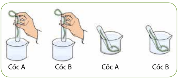 – Điều kiện tiến hành thí nghiệm ở hai cốc khác nhau như thế nào?