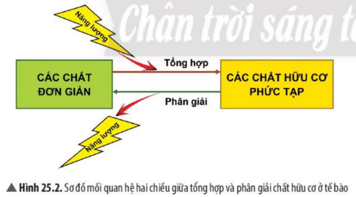 4. Quan sát Hình 25.2, hãy cho biết quá trình tổng hợp và phân giải chất hữu cơ trong tế bào có mối quan hệ với nhau như thế nào?