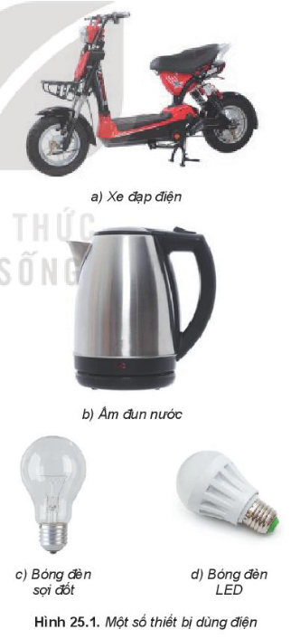 1. Năng lượng điện tiêu thụ trong dụng cụ, thiết bị dùng điện ở Hình 25.1 chủ yếu được chuyển hóa thành dạng năng lượng nào nhiều nhất?