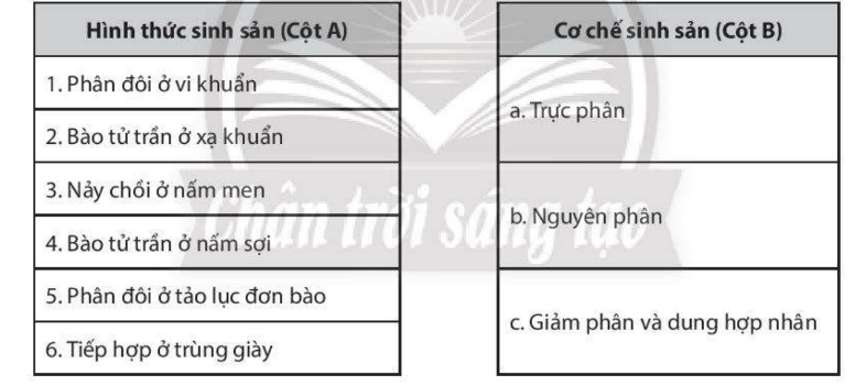 Hãy nối hình thức sinh sản (Cột A) với cơ chế sinh sản (Cột B) sao cho phù hợp.