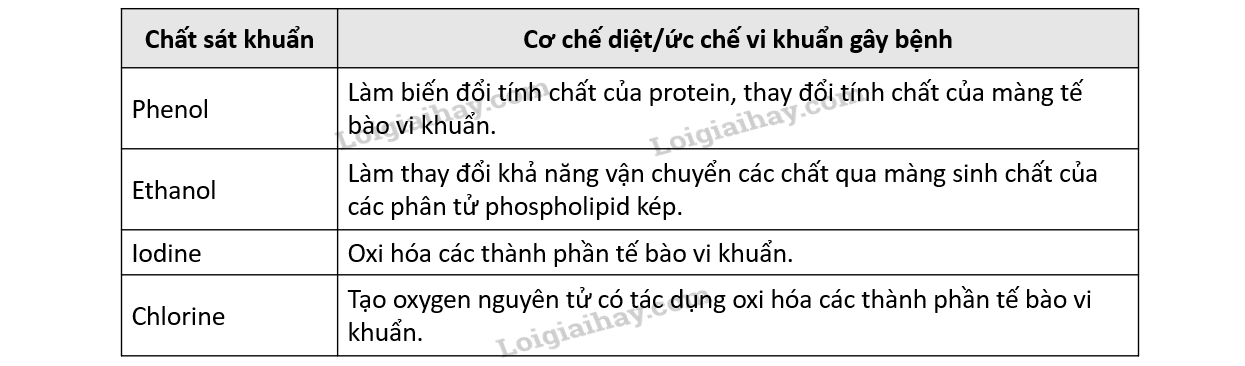 Cơ chế diệt/ức chế vi khuẩn gây bệnh của các chất sát khuẩn như phenol, ethanol, các halogen như sau: