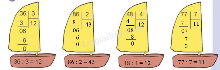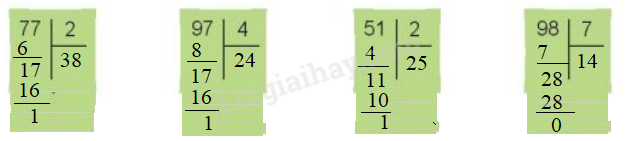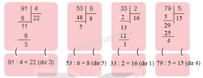 Thực hiện phép chia lần lượt từ trái sang phải.
